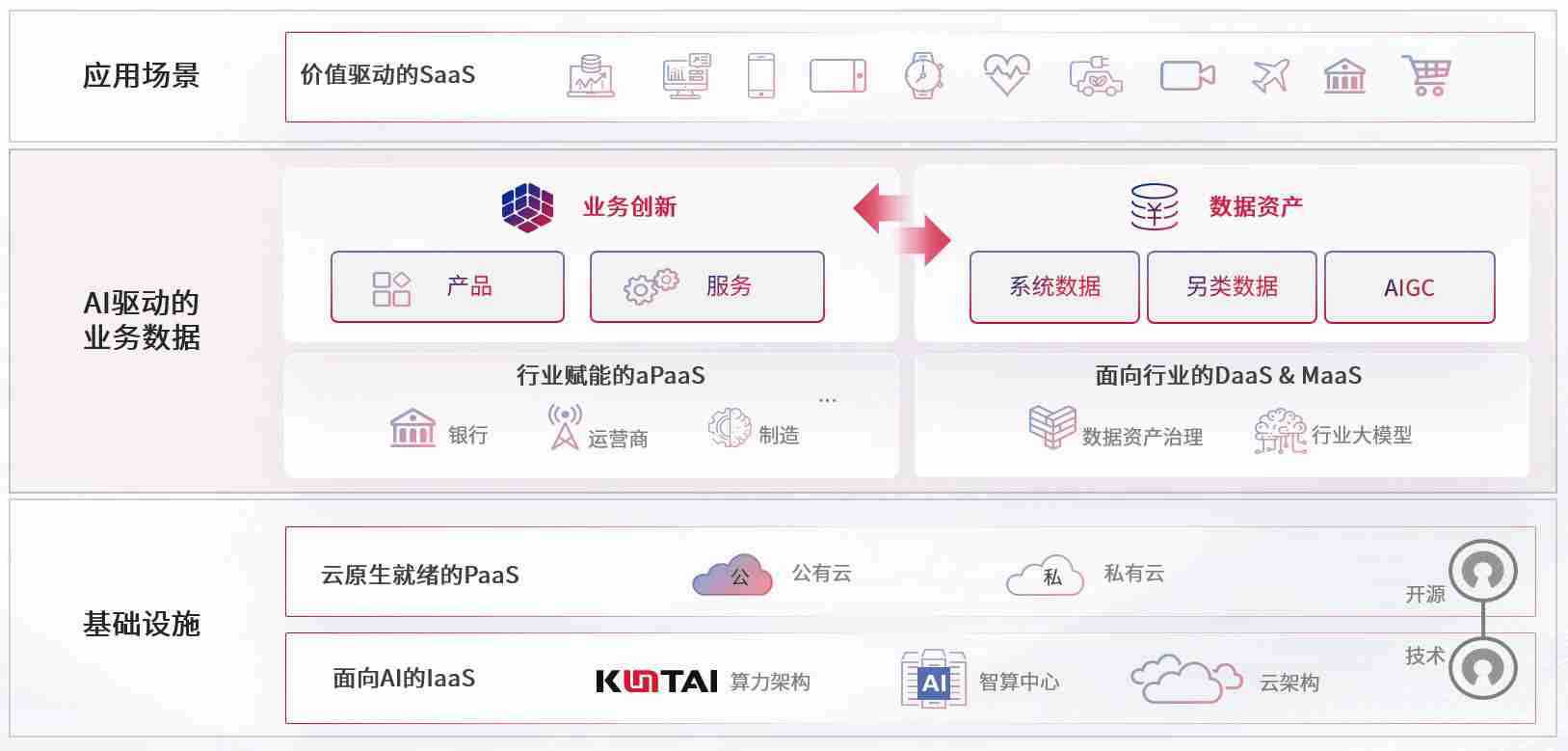 数字时代,,围绕企业数字化转型的关键要素,,,z6com尊龙数码开创性的提出数云融合战略和技术体系框架,,着力在云原生、、、、数字原生、、、AI原生和信创产业上架构产品和服务能力,,为处在不同数字化转型阶段的快消零售、、、、汽车、、金融、、医疗、、政企、、、教育、、、、运营商等行业客户提供泛在的敏捷IT能力和融合的数据驱动能力,,,,构建跨界融合创新的数字业务场景和新业务模式,,,,助力企业级客户建立面向未来的核心能力和竞争优势,,全面推动社会的数字化、、、智能化转型升级。。。